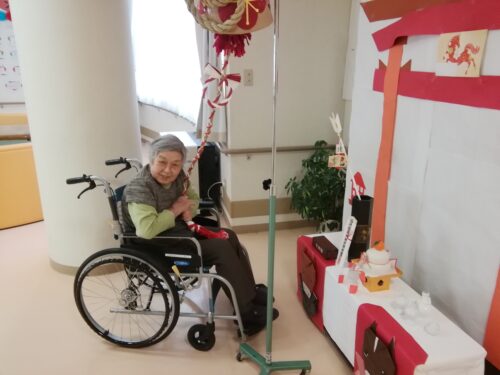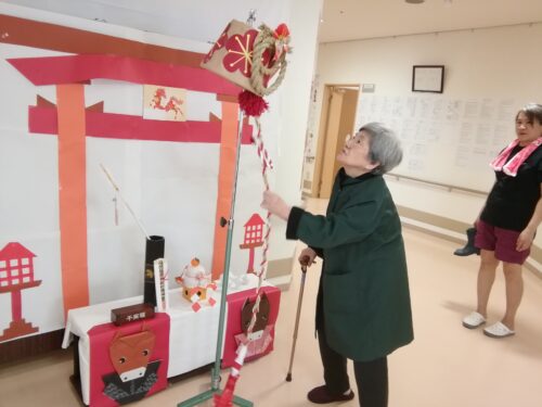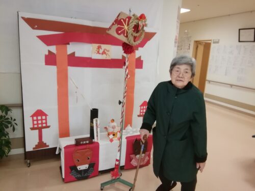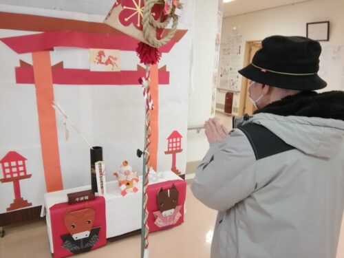 職員が心を込めて作った神社にて手を合わせ健康や家族の幸せをお祈りしていただきました。