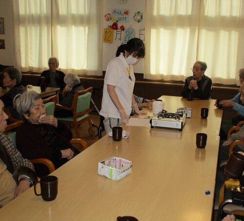 それぞれの机にお汁粉をお届け致します✨