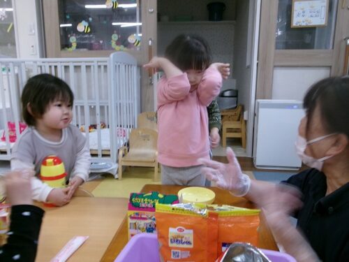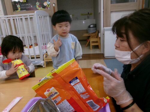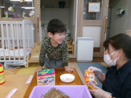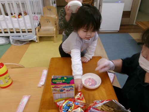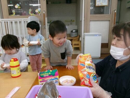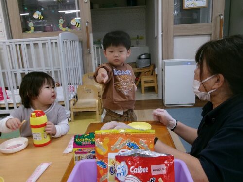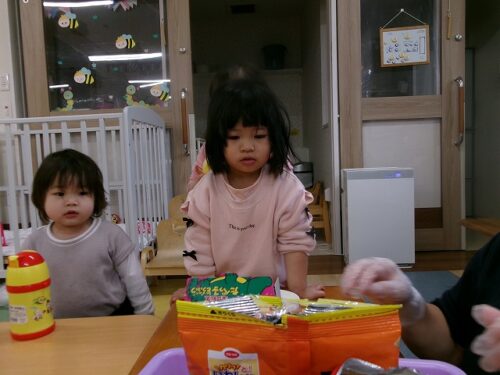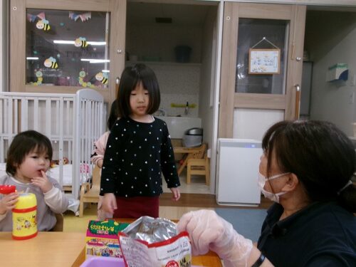 時は15時、お昼寝も終わり午後のおやつに時間のはじまりです~