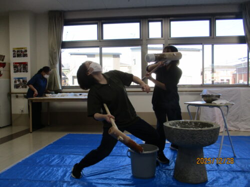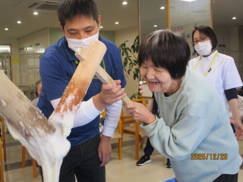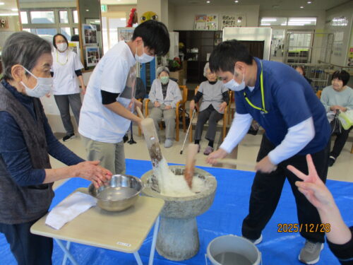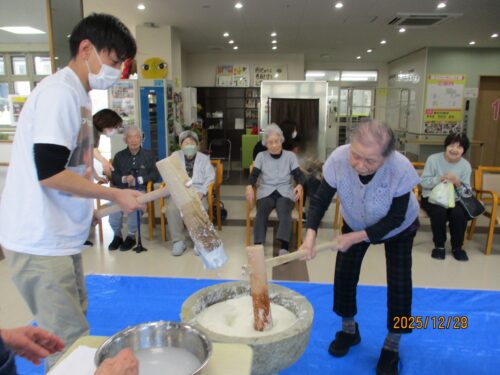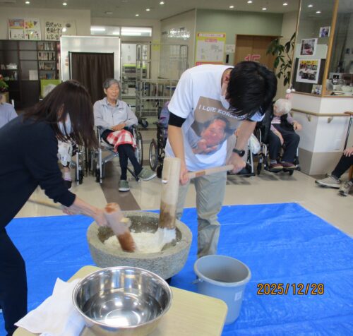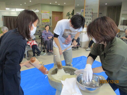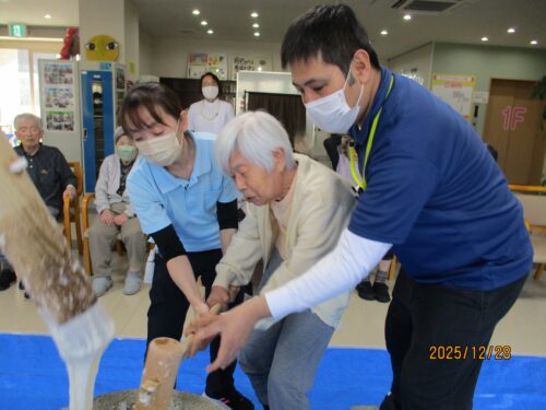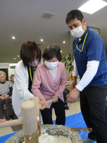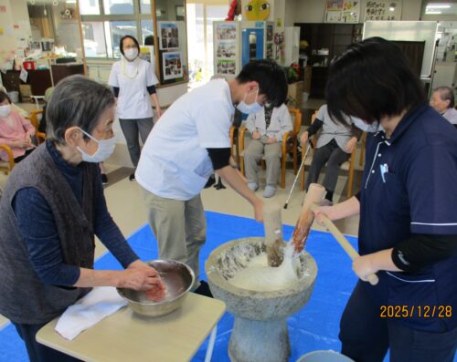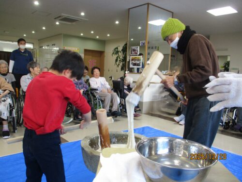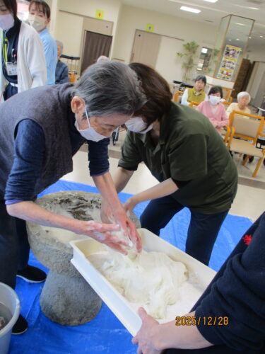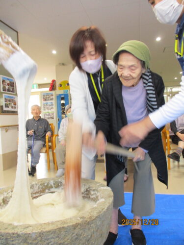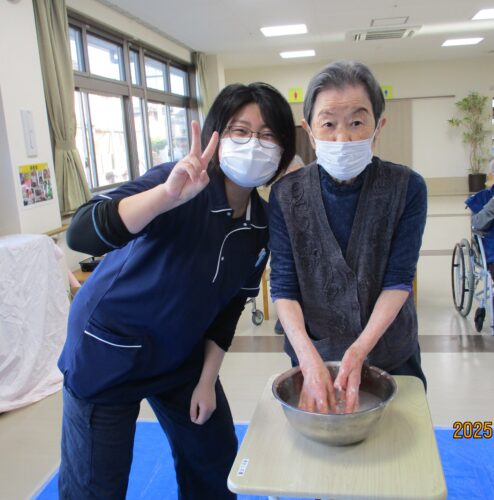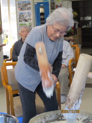 粒潰しが終ったところで、御入居者様にもお手伝いして頂きました!