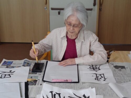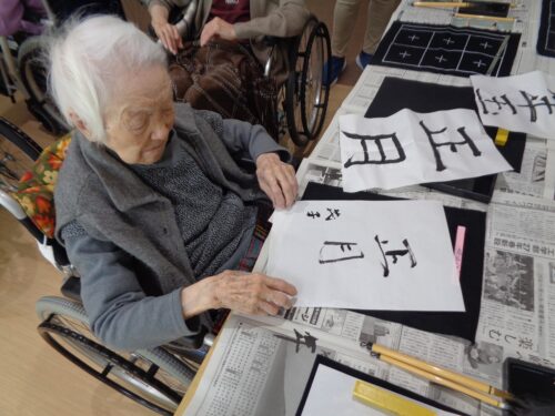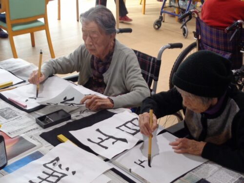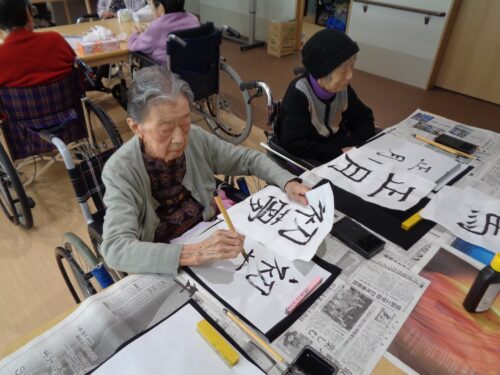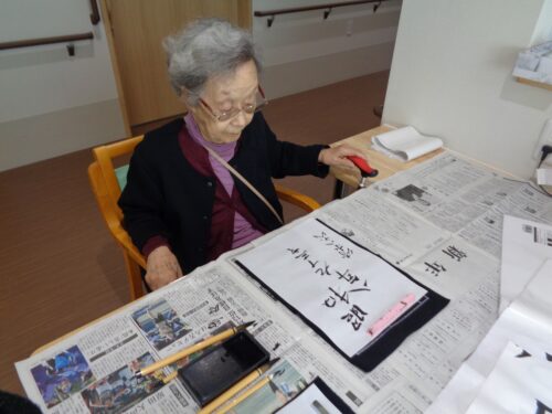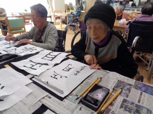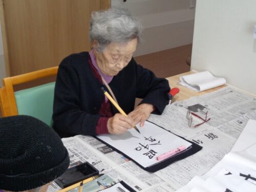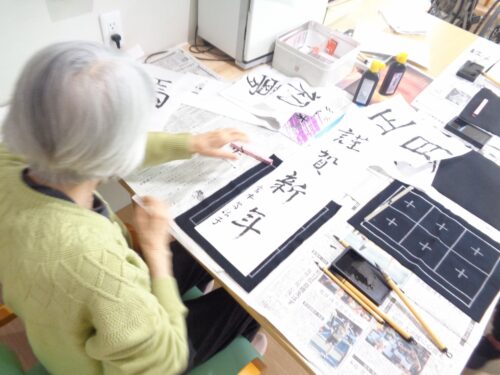 年明けの書初めの様子です。