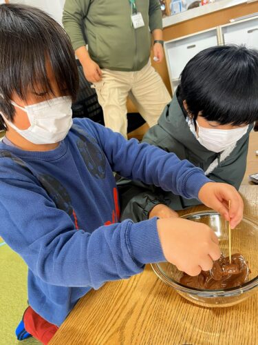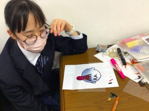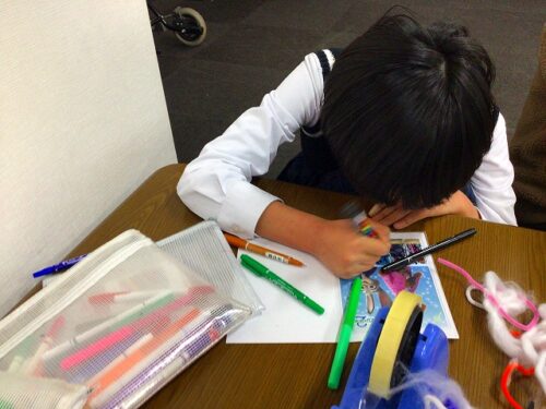 終わった子どもたちからプラパン作りを行い、かにやスライムなどを描いている子もいました。