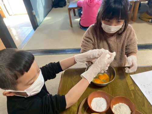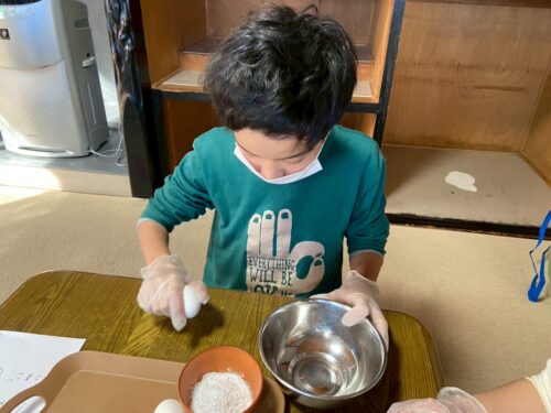 片栗粉と小麦粉を測って入れるよ❣