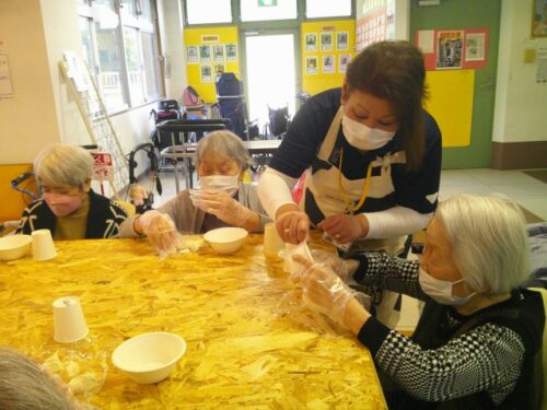 年が明けて、鏡開きを兼ねて白玉だんご作りを行いました🍡