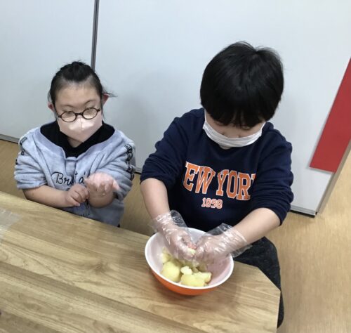 まずは茹でたじゃがいもを潰します💪