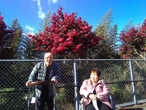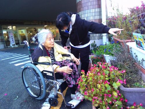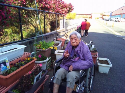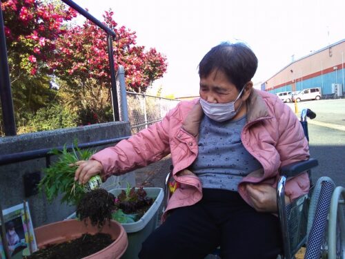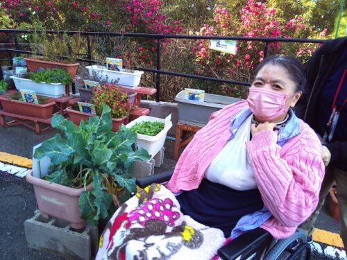 ご自身が担当されているプタンターのお花や野菜を確認されていました。