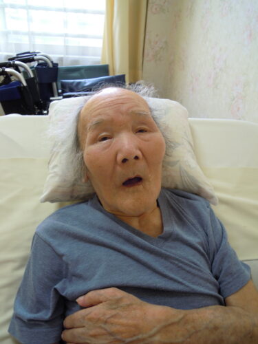 いつもは,お声だけの反応のご入居様様が、お名前をお呼びすると,「は~い。」と言いながら,目を開けてくれました。