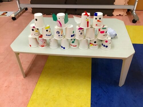 以前の活動で作った雪だるまを並べて雪合戦スタート‼️