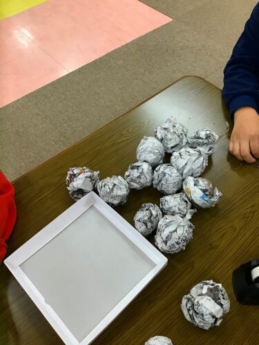 雪玉は新聞紙作りました☃️