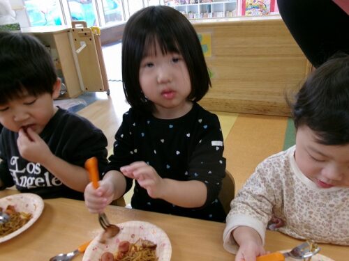 「せんせい、ウインナーおいしいなぁ」
