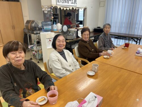 今日のおやつの時間は、面会に来られた方からお菓子を頂き、「みんなと一緒に食べましょう。」と言われたので