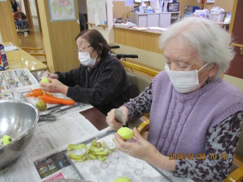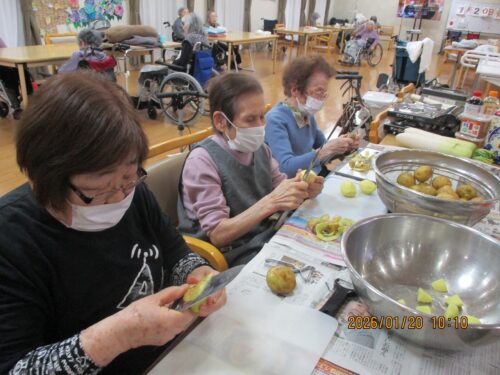 真剣な表情で皮むき開始です✊