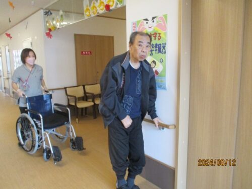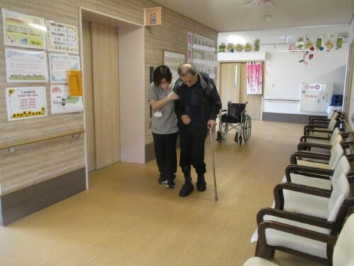 機能訓練士と一緒に歩行訓練です👬