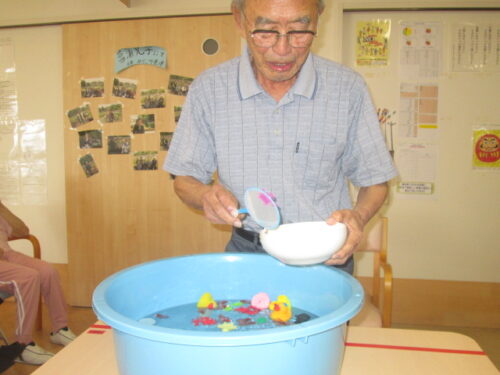 先日のレクリエーション活動では金魚すくいゲームを行いました🎣