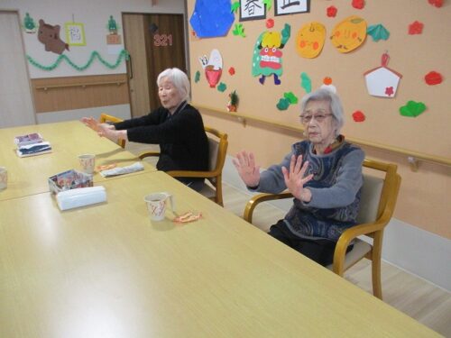 さわやか室蘭弐番館 3階 20日午後の様子♪ 2026-01-21 2026-01-21 皆様こんにちは♪ 20日午後の様子をお届けします おやつ前に軽運動です 上半身の運動です 腕を伸ばします スッキリしました☆