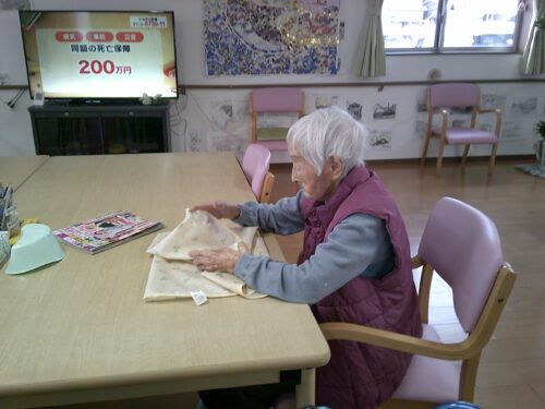 本日も、食事後に使用したエプロンたたみを利用者の皆さまに手伝っていただきました🌞