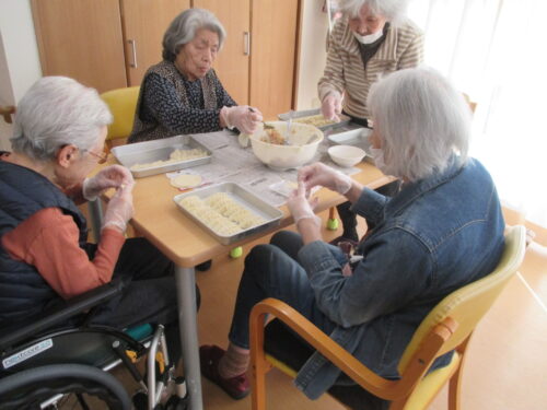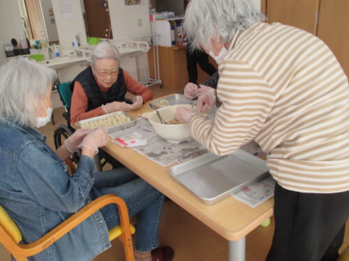 ぎょうざ作りに皆様協力してくださいました。