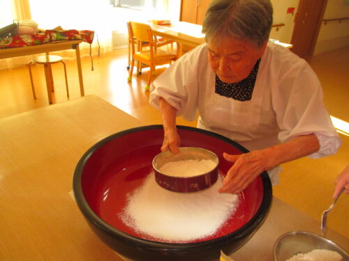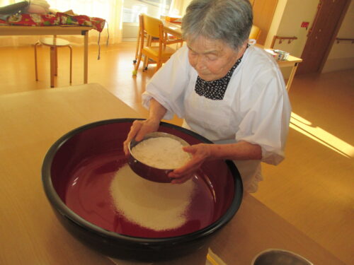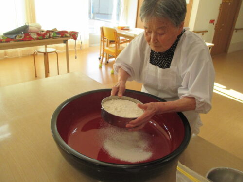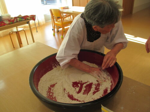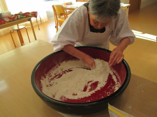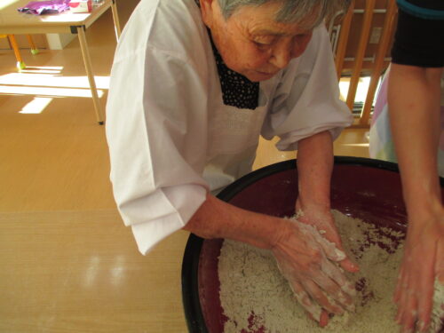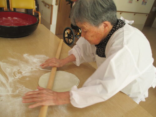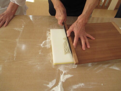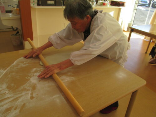 実際にご入居者様とそば打ち出来て、手つきが違い