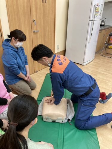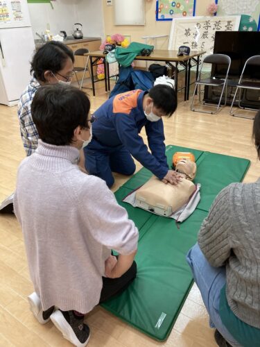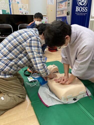 講習内容は心肺蘇生法・AEDの使用方法などです。