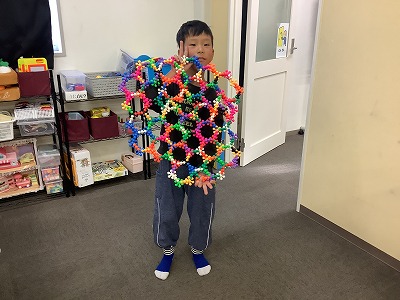 一つひとつは小さなパーツですが、根気強く繋げることでこんなに大きな形になるんですね。完成した時の達成感に満ちた誇らしげな笑顔が、とっても印象的でした!