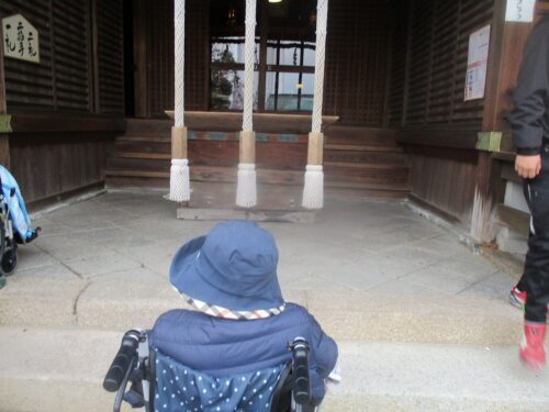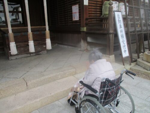 この便では、神社に到着して早々、にわか雨が降りました。御入居者様は『誰か雨女がいるね。』と笑いながら話しておりました。