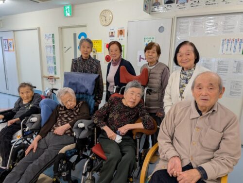 という事で、フロアに入居者の皆様が集合されたので、