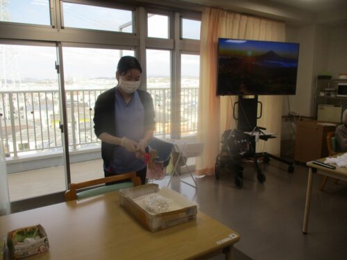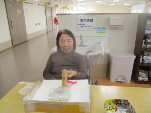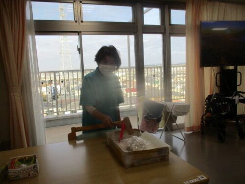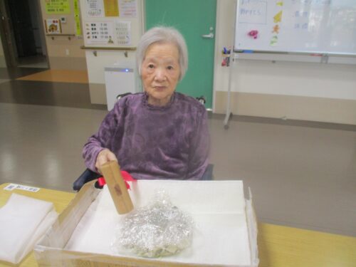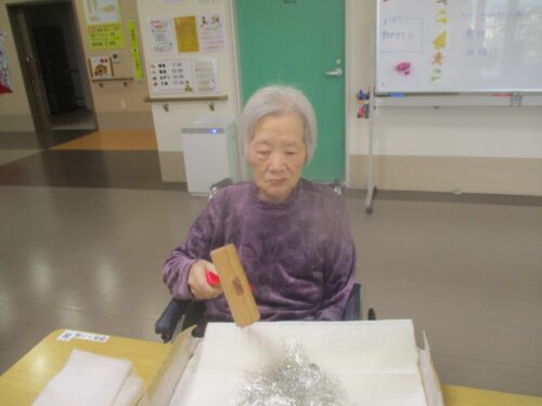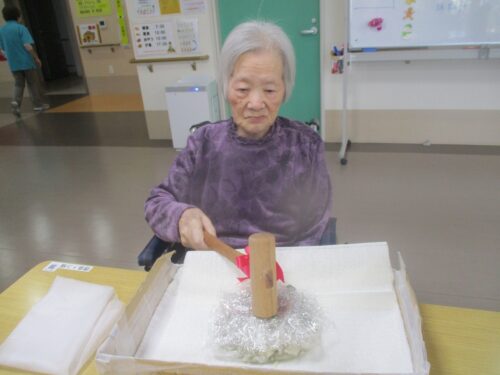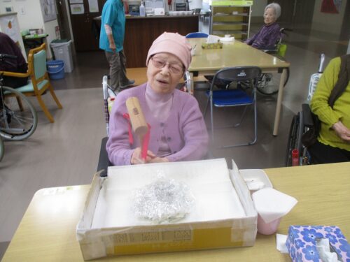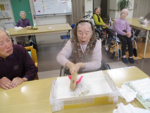 全員が終わった後の鏡餅はあまり割れておらずそれを見たご入居者様が笑っておられました。