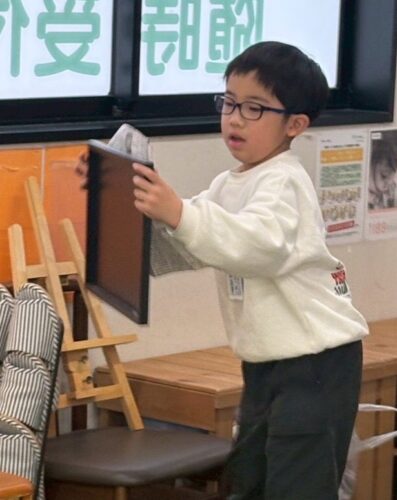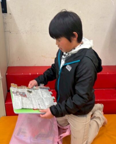 シルエットの形に切り取られた紙をヒントに、おもちゃや置き物を探し出しました。