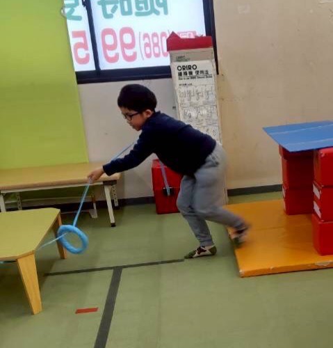 最初は両足ジャンプとトンネル潜り。
