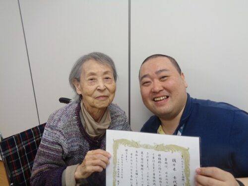 2F佐々木様です日々のリハビリを頑張られておりましたので表彰させて頂きました!