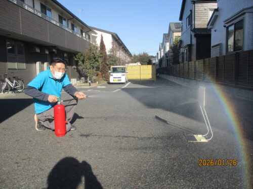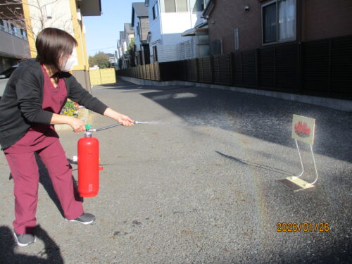 今日は、職員の消防訓練を、行いました。