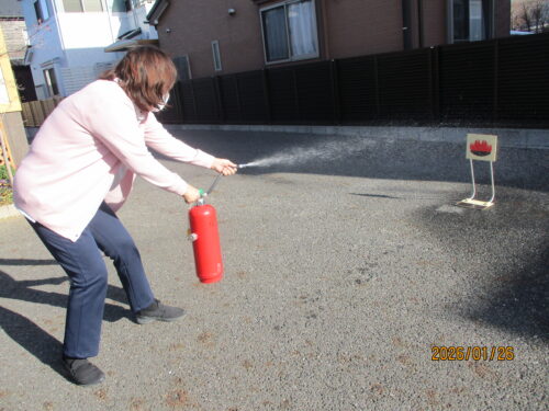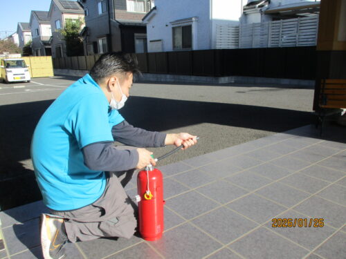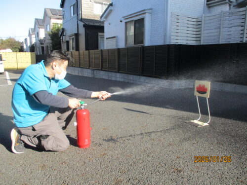 消化器の取り扱いもしっかり覚えました。
