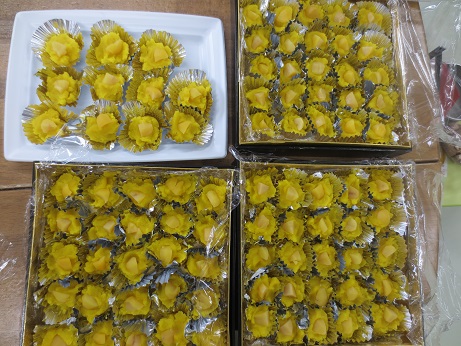 きんとんは、裏ごしして、ケースに入れて、上にカットの栗を載せます 🎍