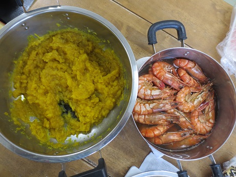 きんとんは、ねりあげています🎍 エビは、味つけて、煮ふくめています🎍