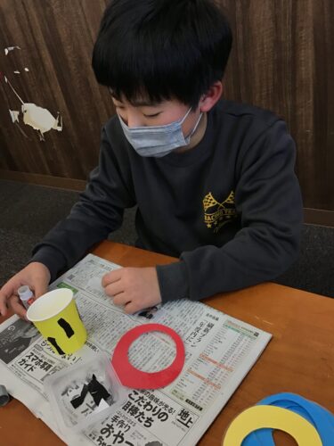 完成すると各自作ったけん玉で遊び始めました