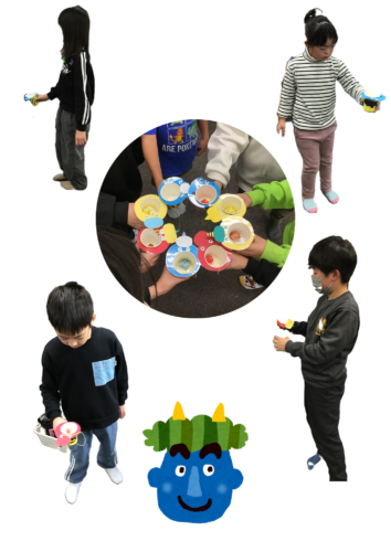 なかなか思うように鬼の口に豆が入らず💦