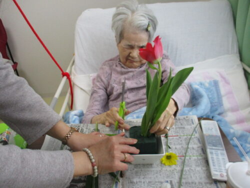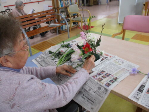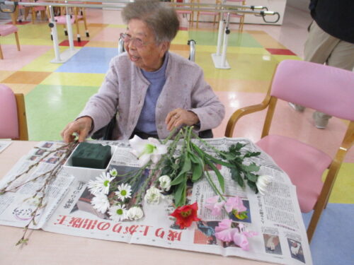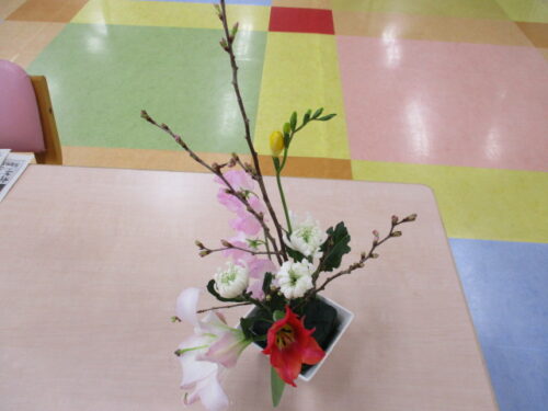 桜の木が際立つように配置を工夫しながら生けております🌸