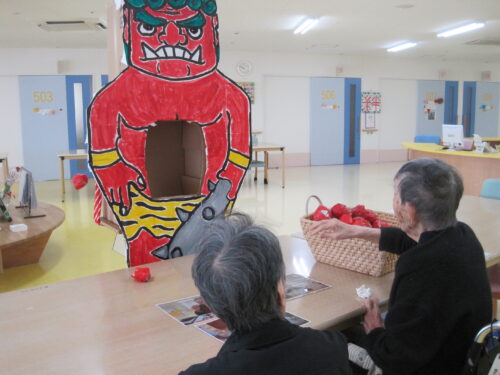 節分が近くなってきましたので、入居様と豆まきをしました😈👹👿