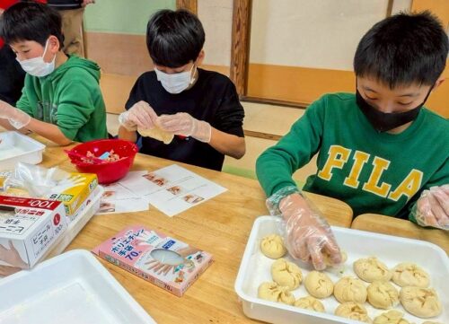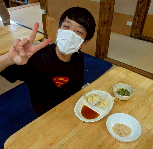 みんなで、生地からこねて包んで手作り肉まんを作りました🎵