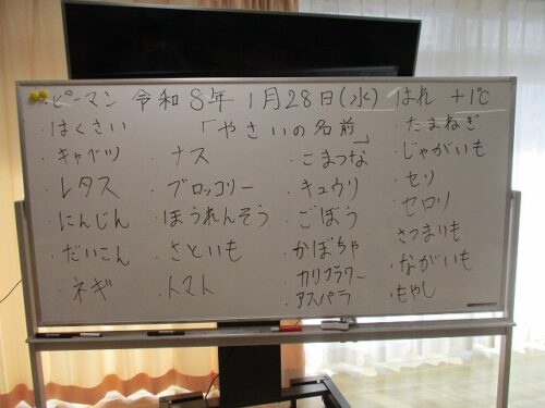 さわやか室蘭弐番館 3階 28日活力朝礼♪ 2026-01-29 2026-01-28 皆様こんにちは♪ 28日の様子をお届けします まずはラジオ体操です 続いて頭の体操 野菜の種類お答え頂きました🥕 素敵な一日になります様に☆