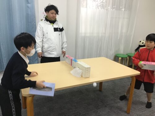 きくち館では空のティッシュ箱を使った卓球を行いました🏓