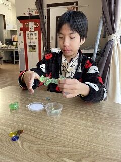 小さくちぎったスライムの中からおはじぎを一つ一つ