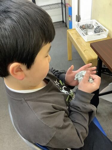 来週の節分イベントに向けて、豆まき用のボール作りも行いました。 新聞紙をギュッギュッと力いっぱい丸めて、投げやすい大きさに調整します。「鬼を倒すぞ!」と意気込みながら、カゴがいっぱいになるまでたくさん作ってくれました。
