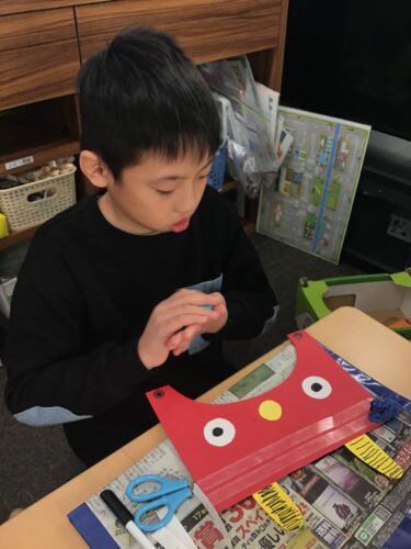 1月27日(火)は、節分に向けて「鬼の帽子」をつくりました♩