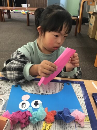 指先で紙をつまみ、丸めることで小さな筋肉が発達し、鉛筆の持ち方などにも繋がるんですよ😊