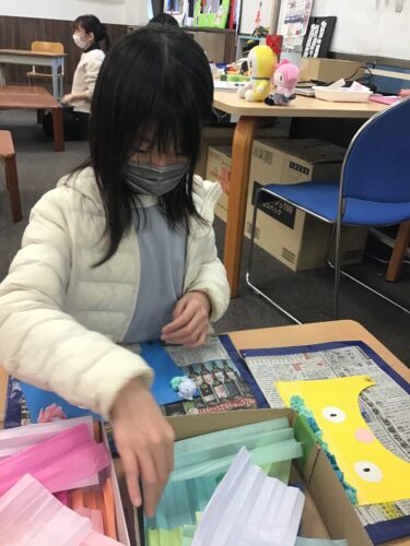 また、丸めた紙をどう配置するか考えることで空間認識力が養われます。