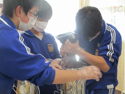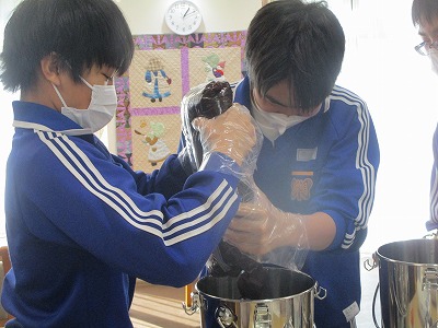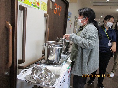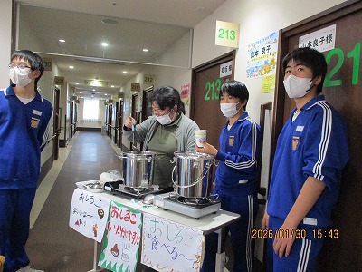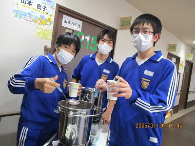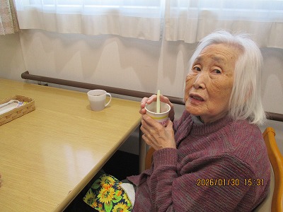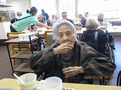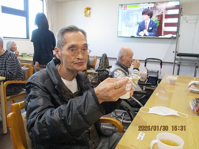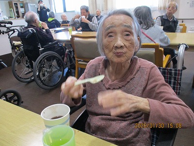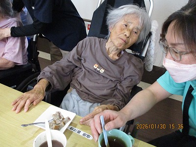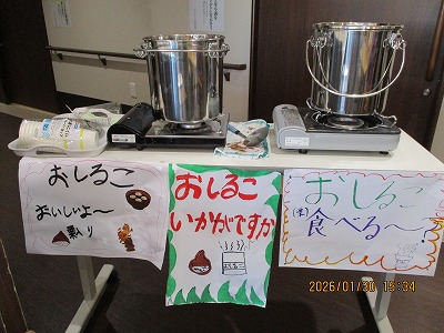 今日はお汁粉の調理レクをお手伝いしていただきました🍡