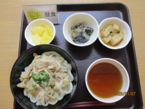 ↓肉うどん・高野豆腐の煮物・茄子の揚げ浸し