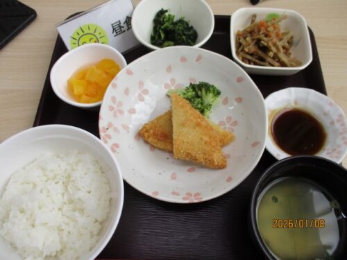 ↓白身魚のフライ・ほうれん草のおろし和え・金平牛蒡