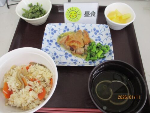 ↓味御飯・鶏の味噌焼き・いんげんのゆかり和え